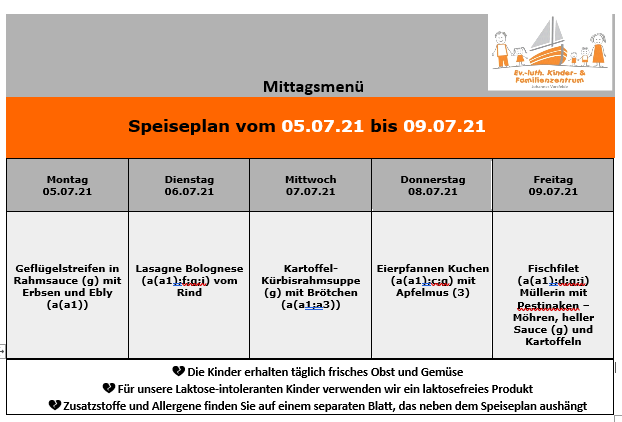 Speiseplan ab 05. Juli 2021