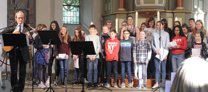 Der Jugendprojektchor hatte unter der Leitung von Propsteikantor Paul-Gerhard Blüthner für diesen Gottesdienst "Auf das was da noch kommt“ und "Auf uns!" eingeübt und wurden mit reichlich Applaus bedacht.