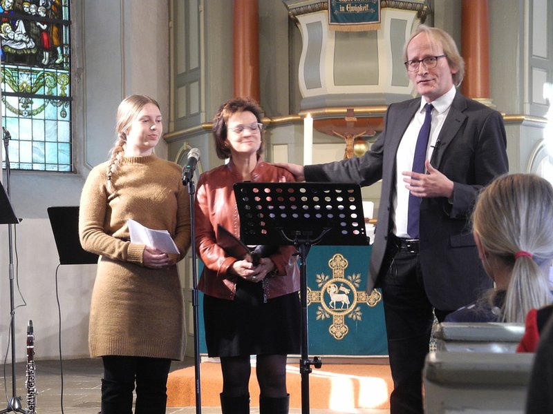 Michele Wenzel, Sabine Kesting und Ulrich Lincoln hielten die Predigt zum Thema des Gottesdienstes "Auf das, was da noch kommt" . Sie machten Mut zum neuen Aufbruch und zeigten, dass schon zu Jesu Zeiten die Menschen immer wieder Neues wagten, wie Jesu Freunde und Begleiter.
