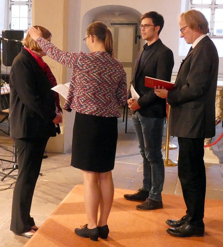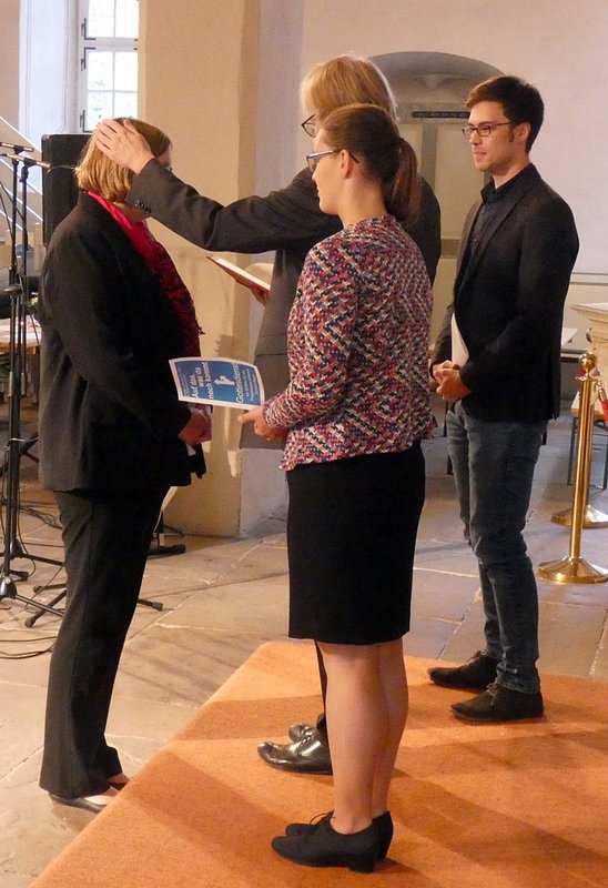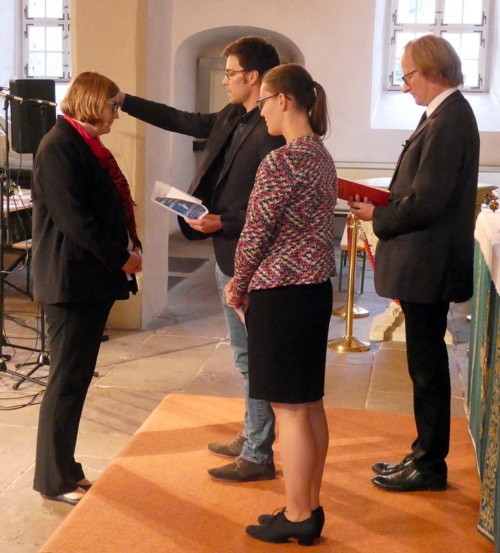 Bei der Einführung wirkten Mira Waxenberger und Sören Neuber mit und segneten Frau Rieger für ihren Weg.