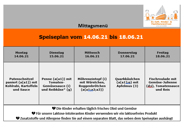Speiseplan ab 14. Juni