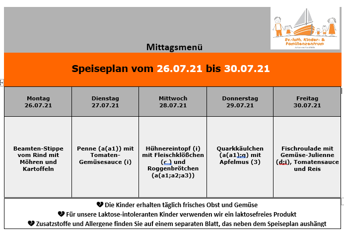 Speiseplan ab 26. Juli