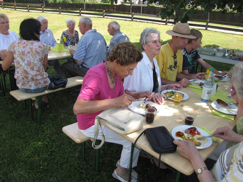 Nach dem Gottesdienst folgte ein Grillfest im Garten des Gemeindezentrums. Viele Gemeindemitglieder hatten wieder Salate oder andere Leckereien mitgebracht. Küster Jonas Roth grillte bei strahlendem Sonnenschein Würstchen und Fleisch.