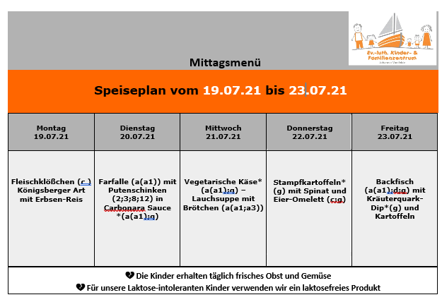 Speiseplan ab 19. Juli